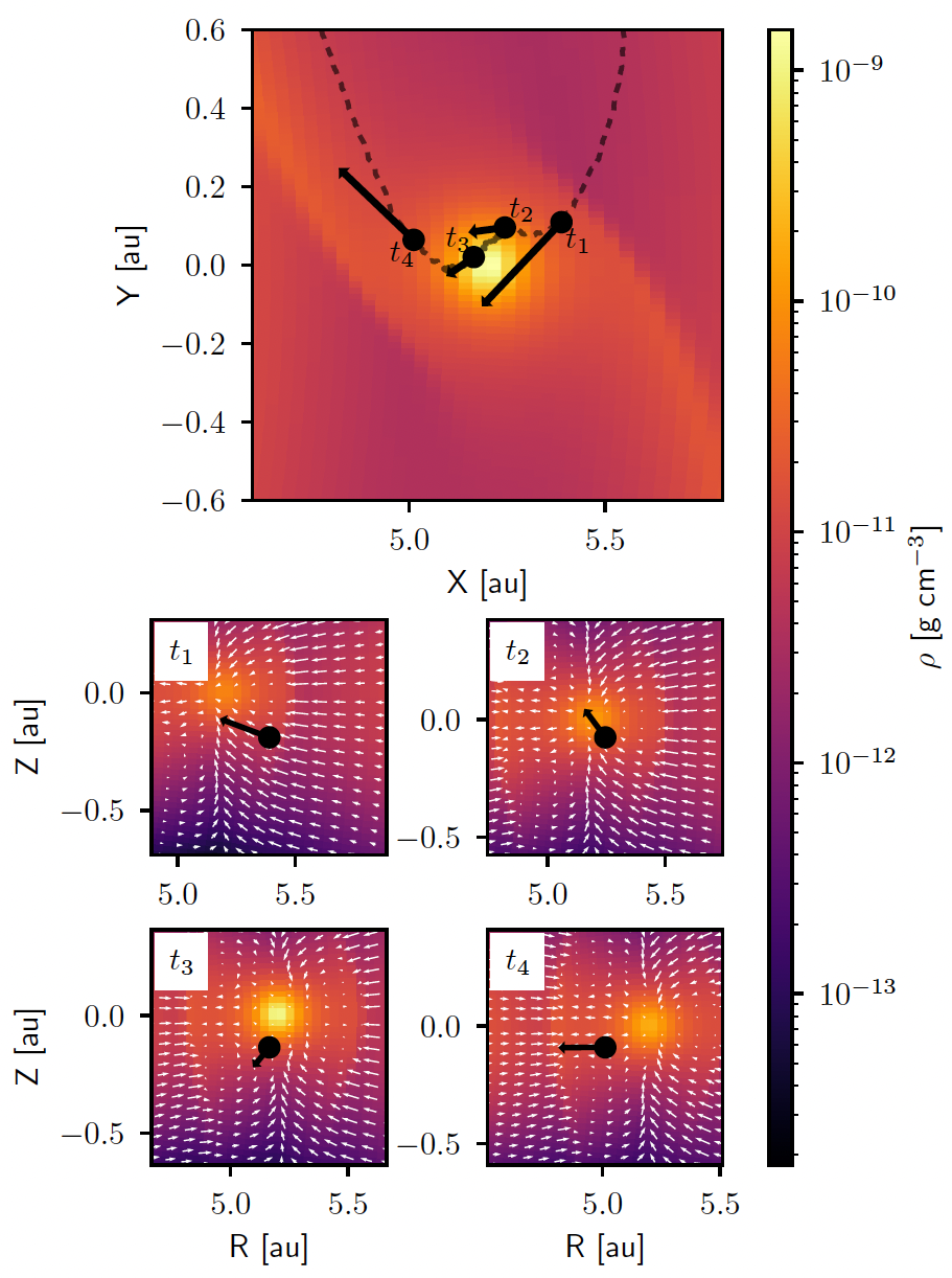 As massive planet grow, they carve out a gap in the surrounding disk, halting the radial transport of solids. I'm interested in studying the detailed trajectory of these solids has they move both radially and vertically through a disk with a growing massive planet. I have developed a new software, ParTrace, to track the trajectories of small solids as they interact with the 3D gas flows created by an embedded giant planet. In two papers, we showed that while giant planet can halt the inward drift of larger pebbles, small grains can "filter" past the giant planet. This filtering efficiency depends on the disk viscosity and planet mass, and by comparing with meteorites, we can better understand out own presolar nebula, and how it compares with protoplanetary disks around other stars.